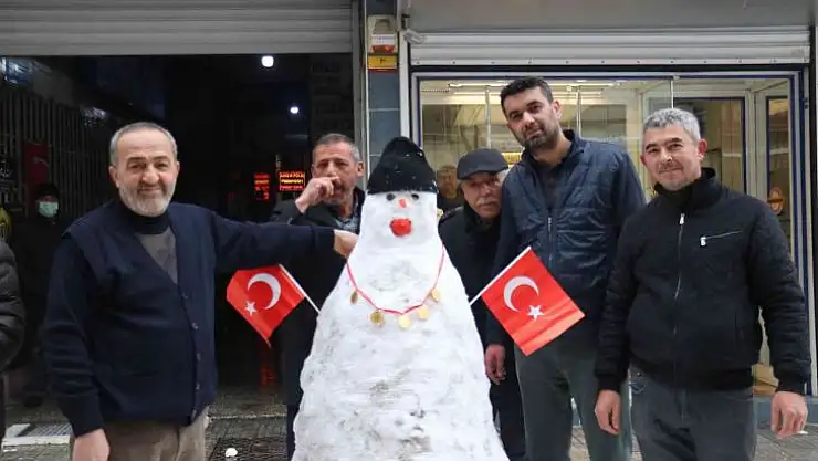 Kent merkezi Dabakhane Mahallesi Tenzile Sokakta yaşanan olayda karın bereket olduğunu belirten esnaflar, kar yılının var yılı olduğu kaydederek kar topu oynayıp gönüllerince eğlenirken, bir kuyumcu esnafı ise yapılan kardan adama beşi bir yerde taktı.