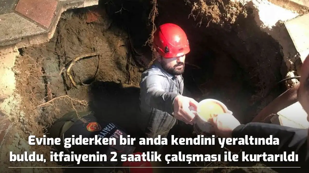 - Evine giderken bir anda kendini yeraltında buldu, itfaiyenin 2 saatlik çalışması ile kurtarıldı