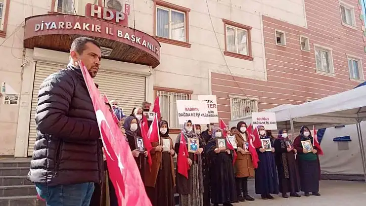 Diyarbakır'da, çocukları terör örgütü PKK mensupları tarafından dağa kaçırılan ailelerin HDP il binası önündeki evlat nöbeti 897'inci gününe girdi. Evlat nöbetindeki baba Süleyman Aydın, HDP'ye tepki gösterdi. Aydın, 'Biz, buradan kesinlikle gitmeyeceğiz. HDP nasıl çocuklarımızı dağa kaçırmışsa öyle de getirsin' dedi.