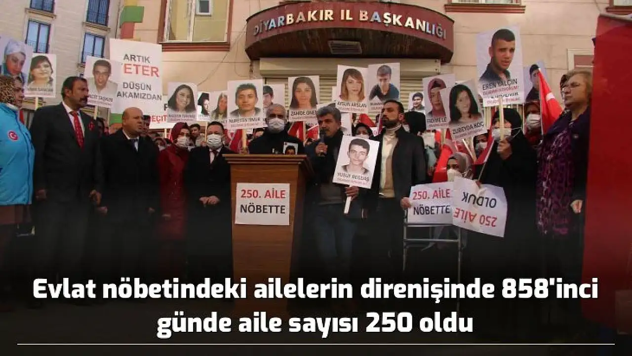Çocuklarının terör örgütü PKK mensupları tarafından dağa kaçırıldığı iddiasıyla 3 Eylül 2019’dan bu yana farklı kentlerden Diyarbakır’a gelerek HDP il binası önünde oturma eylemi yapan aile nöbeti 848’inci gününde de devam ediyor. Ailelerin sayısı çığ gibi büyürken Hakkari’den gelen aile ile birlikte sayı 250’ye yükseldi. Aileler, 250’inci aile birlikte terör yürüyüşü düzenledi.