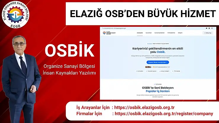 Elazığ Organize Sanayi Bölgesi'nde tamamen yerli imkânlarla geliştirilen OSBİK (Elazığ OSB İnsan Kaynakları), iş arayanlarla sanayiciyi tek platformda buluşturarak dijital dönüşüm sürecini yeni bir aşamaya taşıdı.