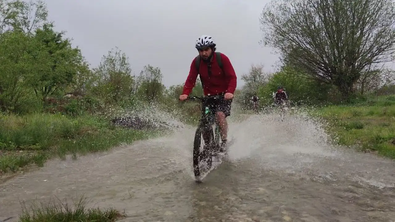 Elazığ'da bir araya gelen bisiklet tutkunları, bisiklet kullanımına dikkat çekmek amacıyla, yağmurlu ve zorlu köy şartlarında pedal çevirdi.