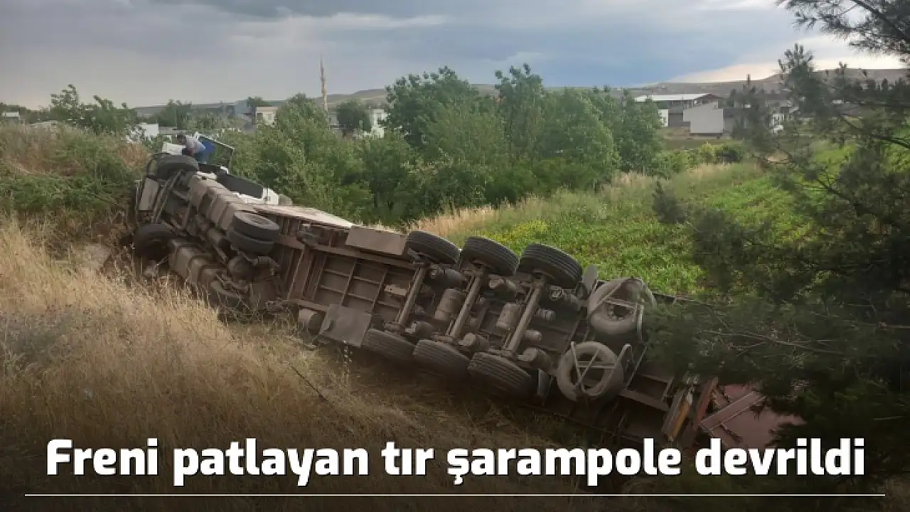 Freni patlayan tır şarampole devrildi