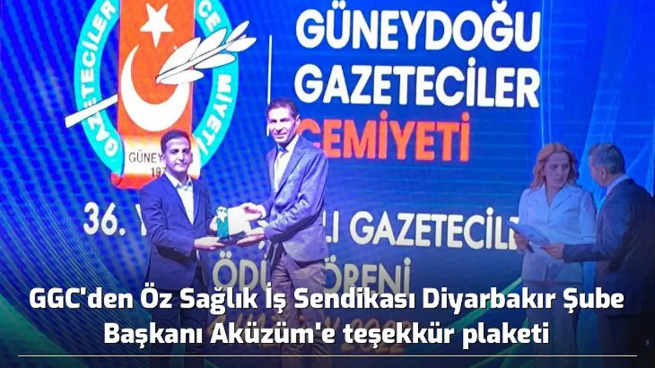 Güneydoğu Gazeteciler Cemiyetinin bu yıl 36'ncısını düzenlediği Yılın Başarılı Gazetecileri Ödülleri töreninde başarılı sendika başkanı ödülü Öz Sağlık İş Sendikası Diyarbakır Şube Başkanı Mehmet Aküzüm'e teşekkür plaketi verildi.