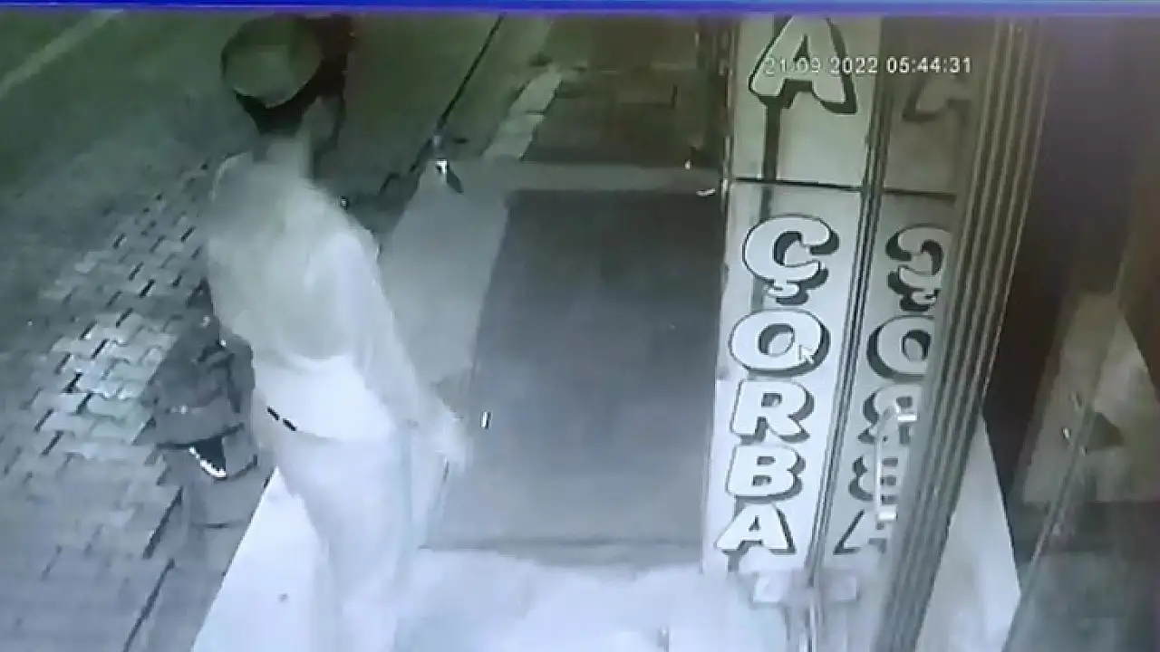 O anlar lokantanın güvenlik kamerasına yansırken, polis şahsın yakalanması için çalışma başlattı.