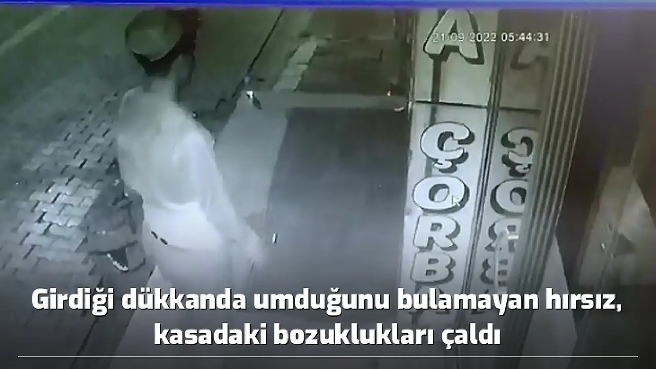Elazığ'da bir lokantaya giren hırsız, umduğunu bulamadığı kasadaki bozuk 10 lirayı çaldı. O anlar güvenlik kamerasına yansıdı.