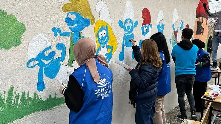Malatya'da Eşref Bitlis Yurdu ve Beydağı Gençlik Merkezi gönüllü öğrencileri Battalgazi ilçesinde bulunan Atatürk Anaokulunu boyadıktan sonra duvarları resimler ve çizgi film karakterleriyle renklendirdi.