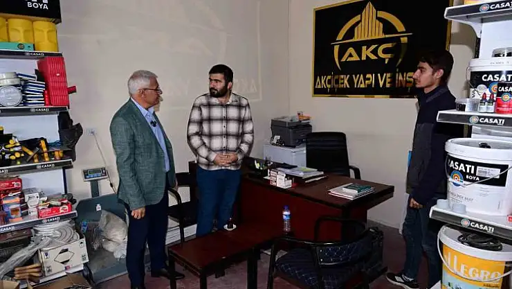 Battalgazi Belediye Başkanı Osman Güder, asrın Felaketinde iş yerleri hasar gören depremzede esnaflar için Eskimalatya'da yapılan geçici işyerlerinde esnafları ziyaret etti.