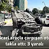 Hafif ticari araçla çarpışan otomobil takla attı: 3 yaralı