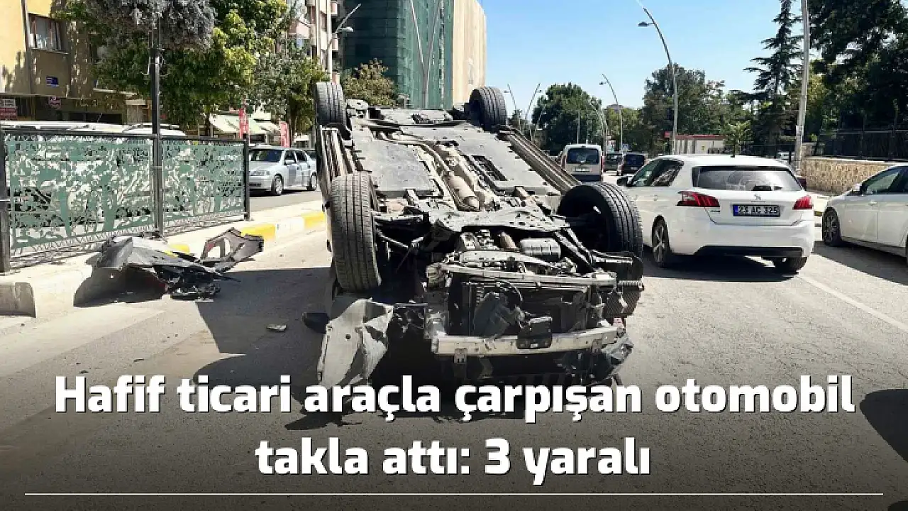 Elazığ'da hafif ticari araçla çarpışan otomobilin takla atması sonucu meydana gelen kazada, 3 kişi yaralandı.