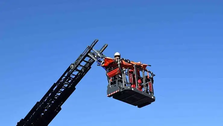 Çıkan yangın sonrasında bulunduğu noktada mahsur kalan bir sağlık personelini, ihbar üzerine olay yerine intikal eden itfaiye ekipleri kurtarmaya başladı.