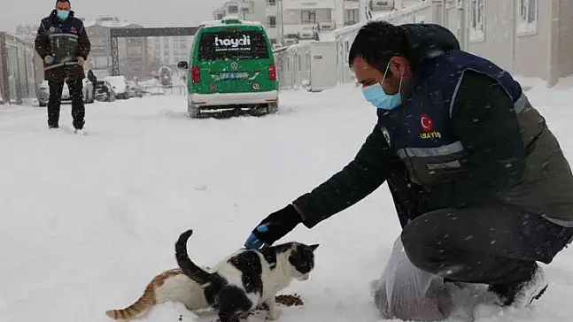 İki gündür yoğun kar yağışının olduğu kentte HAYDİ polisleri, sokak hayvanları için çalışma başlattı. Soğuğun da etkili olduğu kentte yiyecek bulmakta güçlük çeken sokak hayvanlarının yoğunlukta bulundukları alanları belirleyen ekipler, yer yer karlı yolları da aşarak kentin farklı bölgelerindeki bu alanlara ulaşıp düz zemine sokak hayvanları için mama bıraktı.