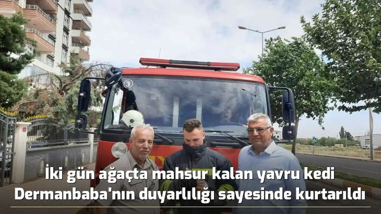 Diyarbakır'da ağaçta mahsur kalan kedi, hayırseverliği ve hayvanseverliğiyle bilinen Dermanbaba adıyla tanınan Diyarbakır Sokak Hayvanları Koruma ve Yaşatma Derneği Başkanı Yılmaz Acu'nun duyarlılığıyla kurtarıldı. Kedinin iki günden bu yana ağaçta mahsur kaldığını öğrenen Acu, Diyarbakır İtfaiyesinden yardım isteyerek yavru kedinin kurtulmasını sağladı.