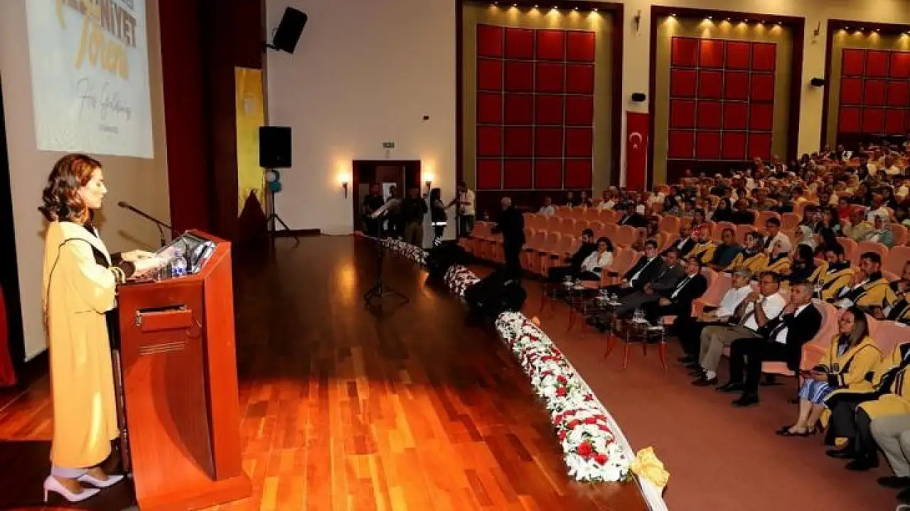 İnönü Üniversitesi Diş Hekimliği Fakültesi’nin 2022-2023 yılı mezuniyet töreni kampüste yer alan Turgut Özal Kongre ve Kültür Merkezi’nde gerçekleştirildi. Törenin açılışında konuşan Diş Hekimliği Fakültesü Dekanı Prof. Dr. Neslihan Şimşek, bugüne kadar 552 öğrenciyi mezun ettiklerini bugün de 112 öğrenciyi daha mezun ettikleri için mutlu olduklarını söyledi. Fakültenin kuruluşundan itibaren görev yapan bir öğretim üyesi olarak hem zihinsel hem de fiziki anlamda bu kadar yoğun duygular yaşadığı bir sene daha önce olmadığını da belirten Şimşek, “Yüzyılın afeti olarak değerlendirilen 6 Şubat ve sonrasında devam eden depremlerde ilimiz en çok hasar alan şehirlerin başında yer aldı. Canım memleketim Malatya’m, adına yine türküler yakılsın, yine de bulunmaz eşin. Ne acı ki bu afette diş hekimliği fakültemizin çok kıymetli iki personelini kaybettik. Her ne kadar bu afetin gölgesi altında bu töreni düzenlemiş olsak da, öyle inanıyorum ki, mezuniyeti en çok hak eden benim öğrencilerim. Depreme rağmen eğitimlerini tamamladılar, sınavlarını başarıyla geçtiler, yılmaz birer sağlık neferi olarak hizmet verdiler. Her şeyi devletten bekleyerek değil, devletin bir unsuru olduğumuz bilinciyle, depremin 2. haftasından itibaren fakültemizi hizmete açtık ve şehirdeki diş tedavi hizmetlerini sunan tek sağlık merkezi olduk. Bizlere bu bilinci aşılayan ve her türlü maddi manevi desteği sunan Sayın Rektörümüz Prof. Dr. Ahmet Kızılay’a buradan bir kez daha teşekkürlerimi sunuyorum” şeklinde konuştu.