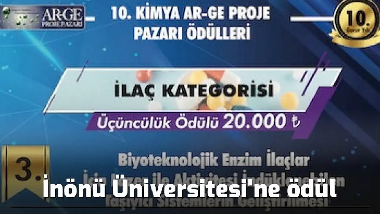 Malatya İnönü Üniversitesi Kimya Bölümü Öğretim Üyesi Prof. Dr. Burhan Ateş'in sunduğu ve COST projesi kapsamında geliştirilen 'Biyoteknolojik Enzim İlaçlar İçin Lazer ile Aktivitesi İndüklenebilen Taşıyıcı Sistemlerin Geliştirilmesi' başlıklı proje, düzenlenen '10. Kimya Ar-Ge Proje Pazarı'nda 3'üncülük ödülünü kazandı.