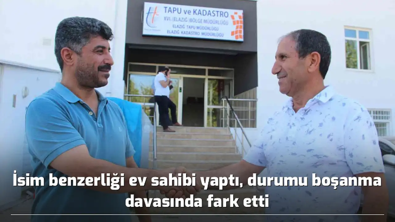 Elazığ'da yaşayan Hasan Yıldırım, eşiyle boşanma davası sürecinde mala konan tedbir sonucunda üzerinde bir evin daha olduğunu öğrendi. Tapuya giderek durumu araştıran ve isim benzerliğinden dolayı başka birinin evinin üzerine yapıldığını gören Yıldırım, yaklaşık 2 sene uğraşmasının ardından Almanya'da yaşayan adaşına ulaşarak evi devretti.