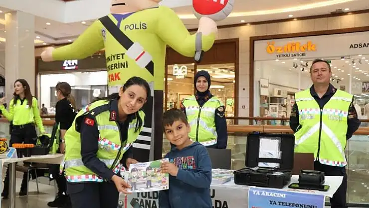 Ceylan Karavil Alışveriş Merkezinde stant açarak ziyaretçilere boyama kitabı, afiş, broşür, şapka, tişört gibi hediyeler dağıtan ekipler, trafik konusunda bilgilendirmeler de yaptı.