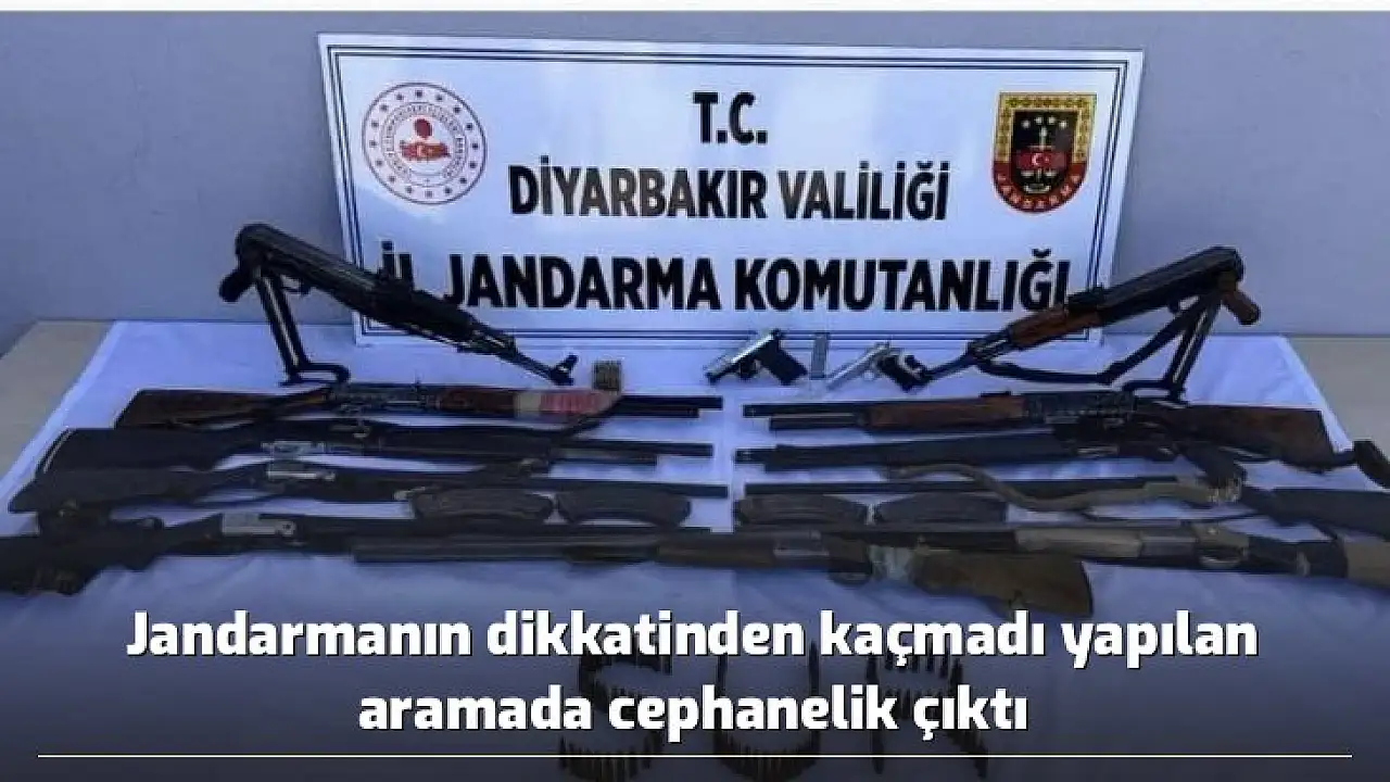Valilikten yapılan açıklamada, Diyarbakır İl Jandarma Komutanlığı, Sur İlçe Jandarma Komutanlığı sorumluluk sahası Eryolu Mahallesi’nde ikamet eden şüpheli şahısların ellerinde çok sayıda ruhsatsız tabanca ve tüfek bulundurdukları ifade edildi. Olayla ilgili olarak şüpheli 4 şahsın adreslerinde yapılan aramada; 2 adet AK-47 Kalaşnikof piyade tüfeği, 9 adet ruhsatsız av tüfeği, 2 adet ruhsatsız tabanca, 4 adet AK-47 Kalaşnikof piyade tüfeği şarjörü, 106 adet 7,62 mm çapında fişek ve 57 adet 7,65 mm çapında fişek ele geçirildiği bildirildi.