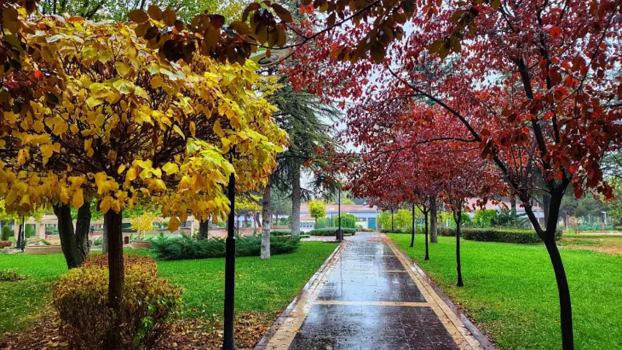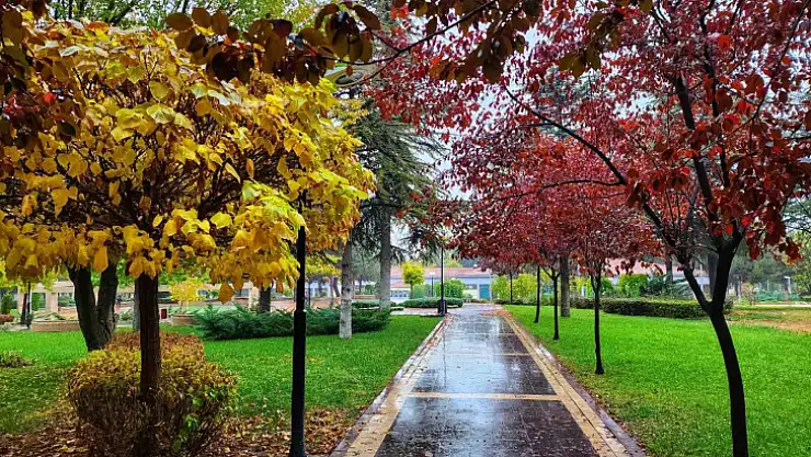 Elazığ Fırat Üniversitesi kampüsünde sonbaharın gelmesiyle birlikte sararmış ve yere dökülen sarı yapraklar kartpostallık görüntüler ile görsel bir şölen sunuyor.