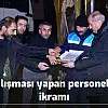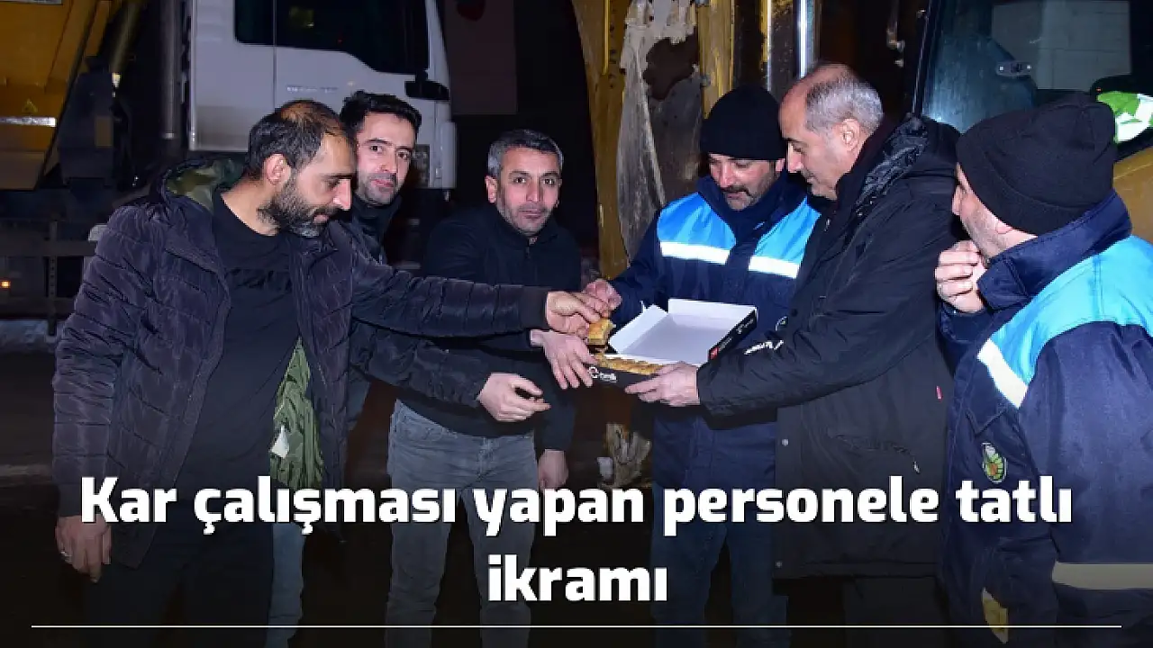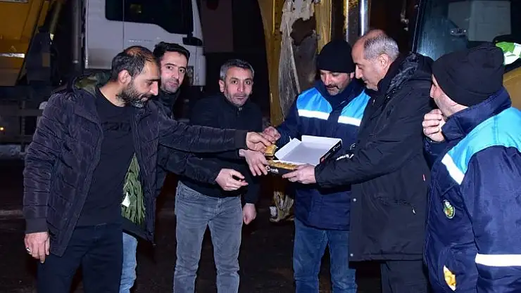 Malatya merkezde aralıklarla devam eden kardan dolayı yolların kapanmaması için çalışma yapan Büyükşehir Belediyesi personeline tatlı ikramı yapıldı.