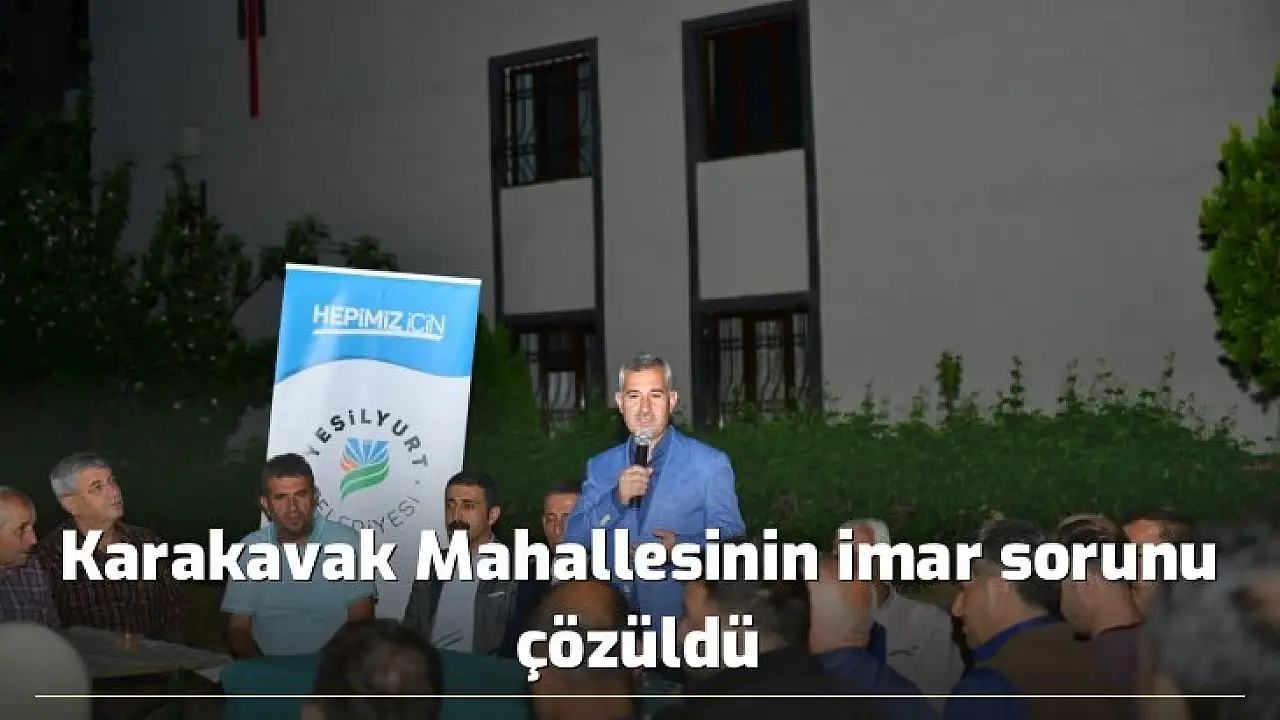 Karakavak Mahallesinde düzenlenen 'Mahalle Meclisi' toplantısında mahalle sakinleriyle bir araya gelen Malatya'nın Yeşilyurt Belediye Başkanı Mehmet Çınar, ' Karakavak'ın kronikleşen imar sorununu büyük oranda çözüme kavuşturduk ve artık imar sorunu yerine yeni parklar, açılan yollar ve yaşam alanları konuşuluyor' diye konuştu.