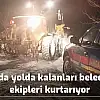 Karda yolda kalanları belediye ekipleri kurtarıyor