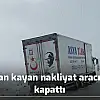 Kardan kayan nakliyat aracı yolu kapattı