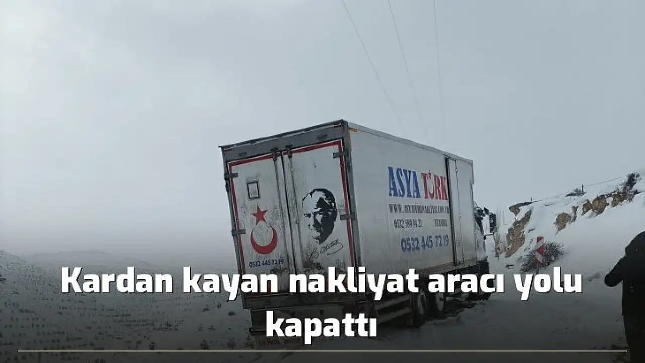 Malatya’nın Darende ilçesinde buzlanan yolda kayan bir nakliyat aracı yolu trafiğe kapattı.