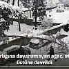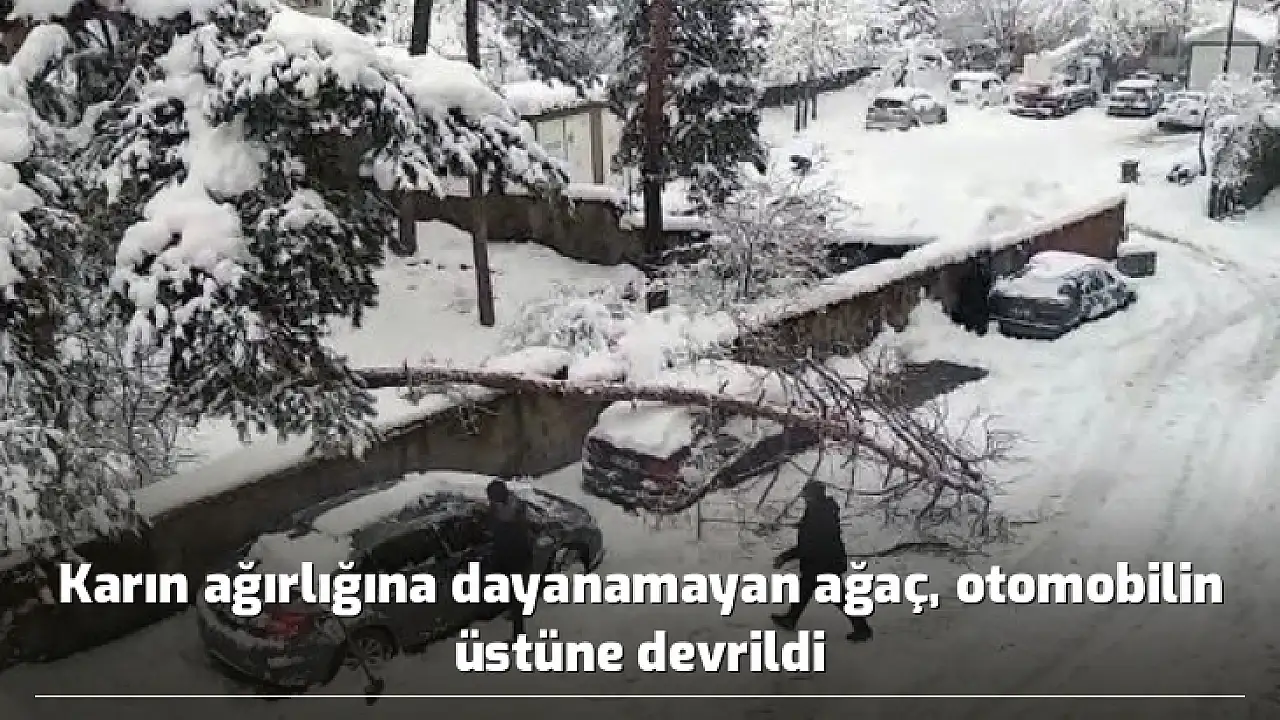 Karın ağırlığına dayanamayan ağaç, otomobilin üstüne devrildi