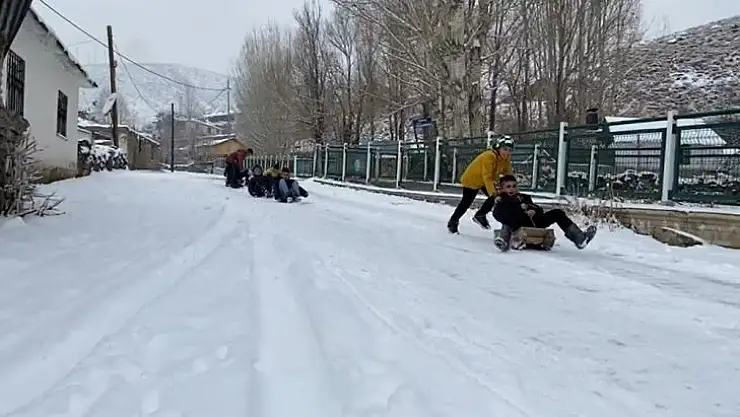 Bingöl'ün Karlıova ilçesinde etkili olan kar yağışının tadını çocuklar çıkardı.