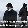Karlı yolda kalan vatandaşların imdadına ekipler yetişti