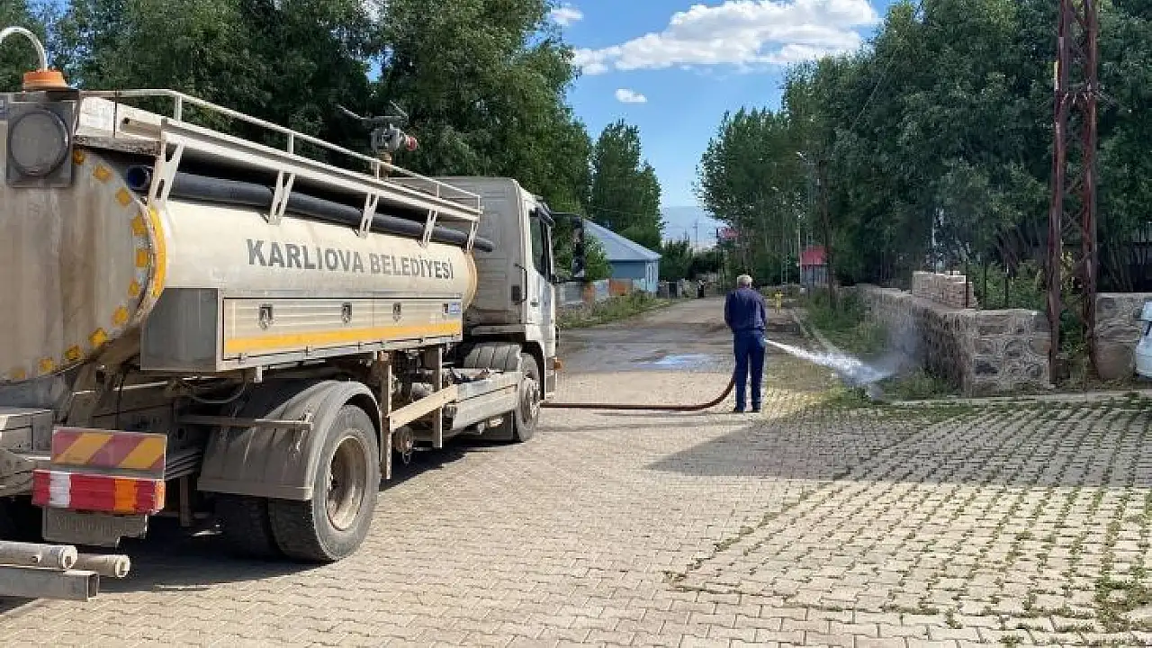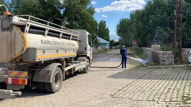 Bingöl'ün Karlıova ilçesinde belediye ekipleri, ana cadde ve sokakları yıkayarak temizliyor.
