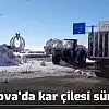 Yılın yaklaşık 5 ayını kar altında geçiren Bingöl’ün Karlıova ilçesinde kar çilesi bitmiyor. Ülkenin birçok ilinde bahar havası yaşanırken, Karlıova’da ekiplerin zorlu kar mesaisi devam ediyor. Merkezde biriken karlar belediye koordinesinde kamyonlarla ilçe dışına taşınırken, itfaiye ekipleri de çatılarda oluşan buz sarkıtlarını temizliyor. Kar yağışının başladığı günden bu yana yoğun bir mesai yapan ekipler, mücadelenin sürdüğünü bildirdi.