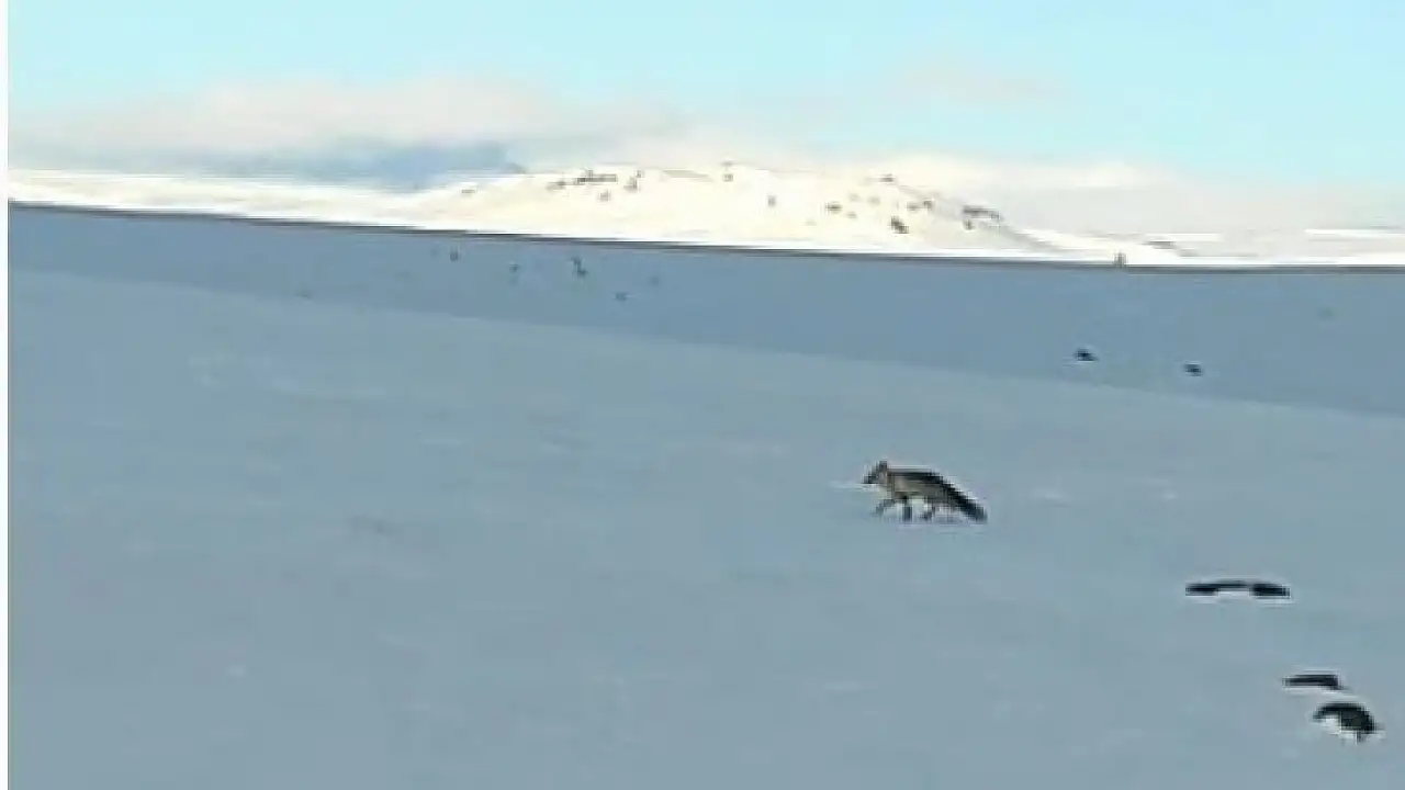 Bingöl'ün Karlıova ilçesinde kar üstünde yiyecek arayan tilki görüntülendi.