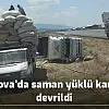 Kazada, kamyon sürücüsü yara almadan kurtulurken samanlar ise başka bir araca nakledildi.