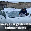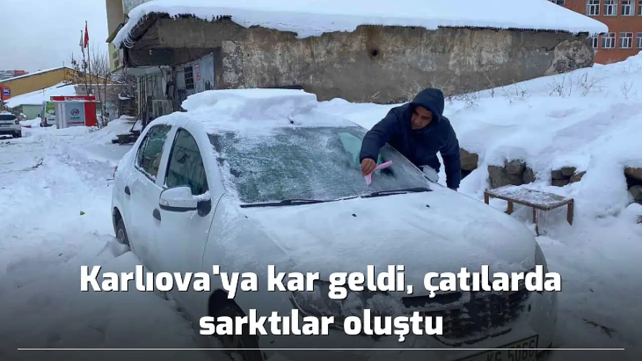 Karlıova'ya kar geldi, çatılarda sarktılar oluştu