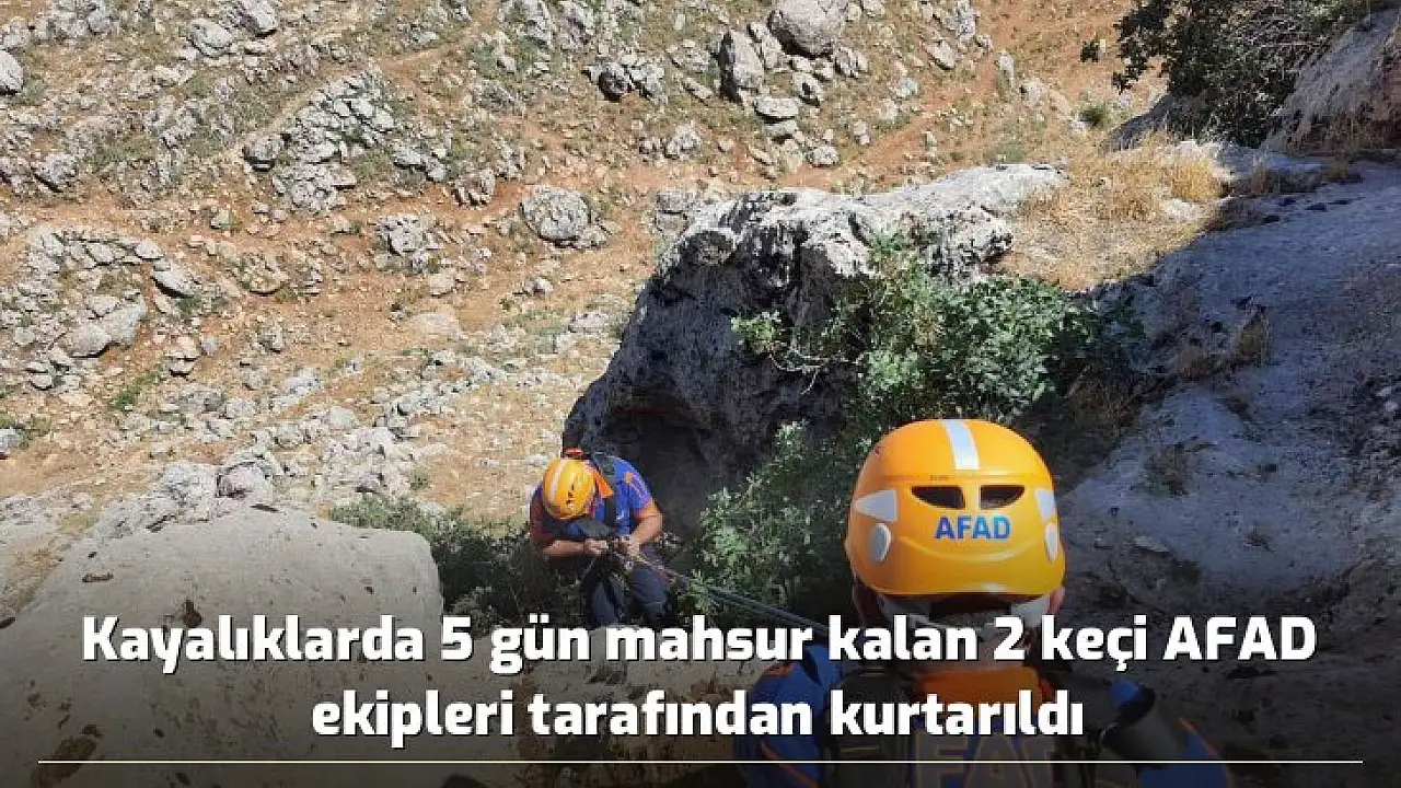 Diyarbakır'ın Silvan ilçesi çardak köyünde kayalıklarda 5 gün boyunca mahsur kalan 2 keçi, AFAD ekiplerinin yoğun uğraşları sonucu kurtarıldı.