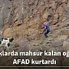 Kayalıklarda mahsur kalan oğlakları AFAD kurtardı