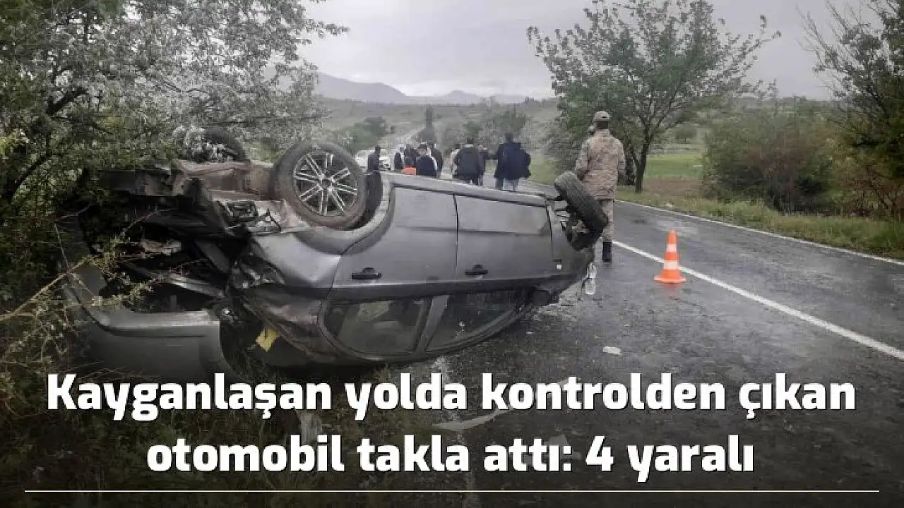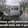 Kayganlaşan yolda kontrolden çıkan otomobil takla attı: 4 yaralı