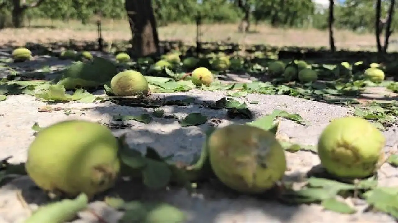 Malatya'nın Battalgazi ilçesinde gerçekleşen dolu yağışı sebebiyle birçok kayısı ağacındaki yeni mahsuller zarar gördü.