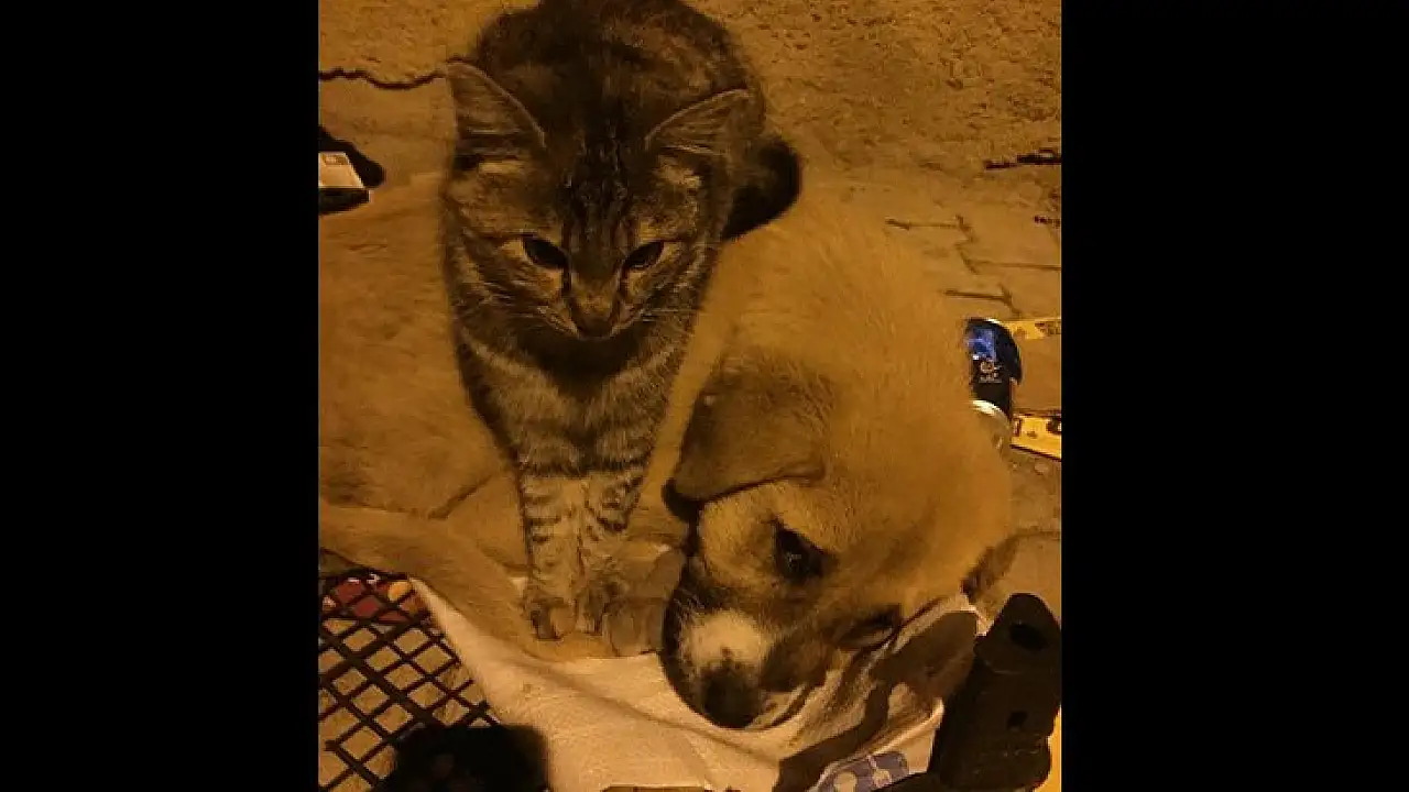 Kedi ile köpeğin şaşırtan dostluğu