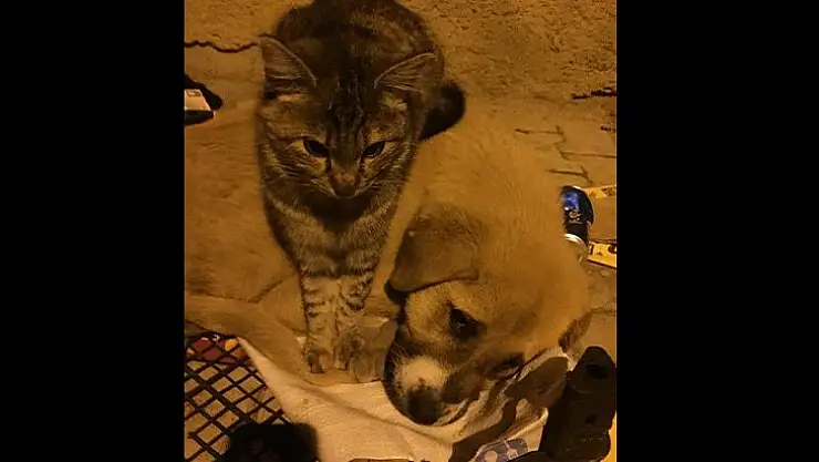 Elazığ'da kedi ile köpeğin dostluğu görenleri şaşırtıyor.