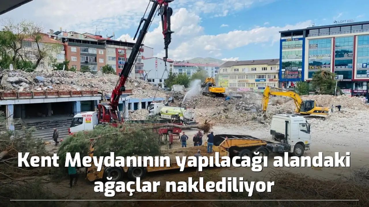 Kent Meydanının yapılacağı alandaki ağaçlar naklediliyor