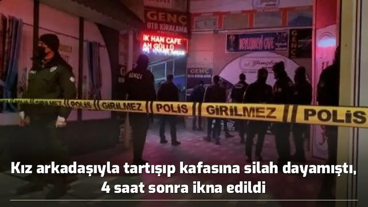 Elazığ'da iddiaya göre kız arkadaşıyla tartışan şahıs, önce silahıyla etrafa rastgele ateş ettikten sonra kafasına silahı dayamıştı. Şahıs, 4 saatin sonunda ikna edildi.