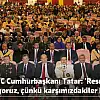 Türk askerinin Kıbrıs’ta bulunması ile birlikte 1974 yılından beri kimsenin burnunun dahi kanamadığını söyleyen Tatar, “Türk Silahlı Kuvvetleri’nin varlığı dolayısıyla elbette caydırıcı bir güç olmasıdır. Karşı taraf bir halt yemeye kalkışamamıştır. Onun için herkes haddini bilecek ve biz Türkiye’nin garantörlüğü ile Türk askerinin Ada’dan caydırıcı bir güç olarak varlığını sürdürmesi ile Kıbrıs’taki dengeleri o şekilde korumayı sonuna kadar başaracağız” dedi. Avrupa Birliği’nin tanıdığı Güney Kıbrıs Cumhuriyeti’nin aslında nüfusu bir milyon olan bir Rum Devleti olduğunu da ifade eden Tatar, “Bu nüfusu bir milyon dahi olmayan Rum Devleti, Avrupa Birliği’ne gidiyor, orada hepiniz görüyorsunuz Fransa’nın Cumhurbaşkanı, Almanya’nın Başbakanı, İtalya’sı vesaire o da orada duruyor. Ve orada duran adam şimdiki Cumhurbaşkanları Nikos Anastasiadis. Türkiye Cumhuriyeti’nin 85 milyonunun, 450 milyonluk Avrupa Birliği ile ilişkilerini veto edebiliyor. İşlerine geldiğinde kendi bekaları için Kıbrıs’ı tek taraflı olarak hiçbir uluslararası sözleşmeden hakları olmadan Kıbrıs’ı bir AB ülkesi yapabileceklerini düşünüyorlar. Anastasiadis bütün Ada’dan cumhurbaşkanı olarak her türlü görüşmeye protokole sözleşmeye dahil edebiliyorlar. Ve Kıbrıs’ta bizlerin önünü tıkıyorlar. Türkiye’nin önünü tıkıyorlar. Böyle bir anlayış karşısında bizlerin birlik ve beraberliği ile kutsal ve milli davamızı en iyi şekilde milli hassasiyetlerimiz doğrultusunda yürütmekten başka çaremiz yok” ifadelerine yer verdi.