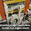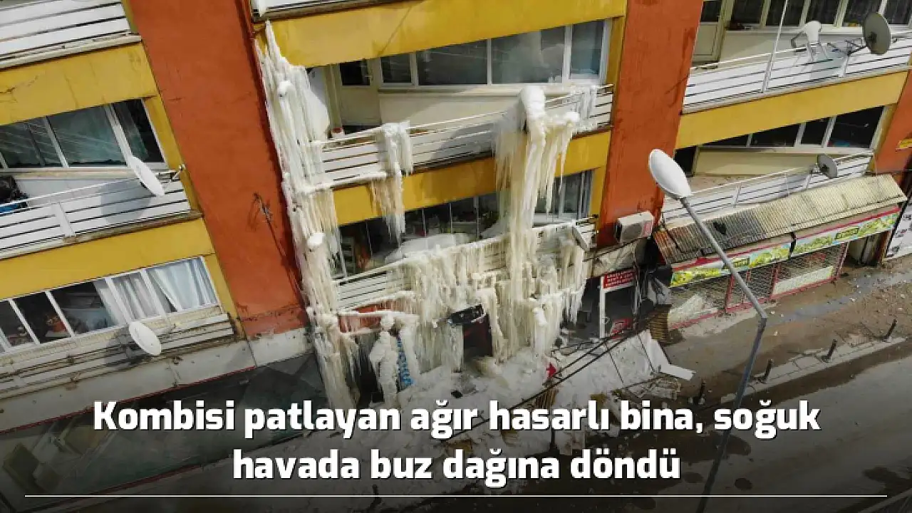 Kombisi patlayan ağır hasarlı bina, soğuk havada buz dağına döndü