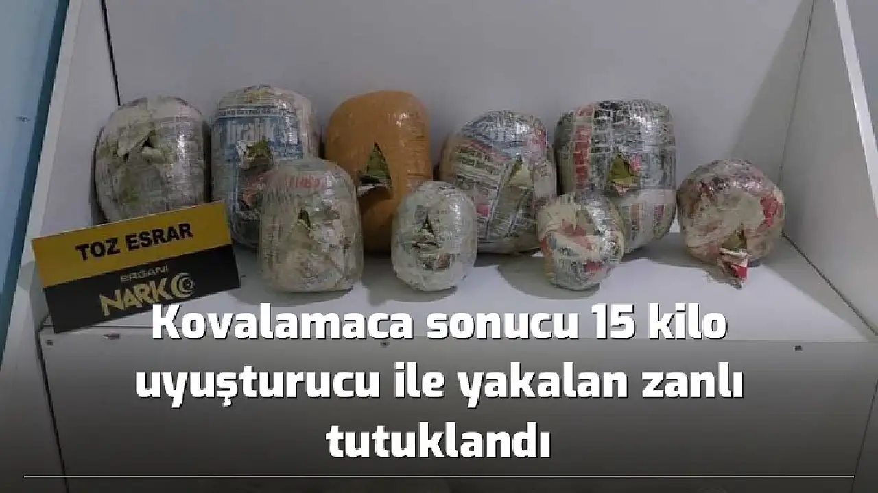 Diyarbakır'ın Ergani ilçesinde kovalamaca sonucu 15 kilo 550 gram uyuşturucu ile yakalanan şüpheli, sevk edildiği adli makamlarca tutuklandı.