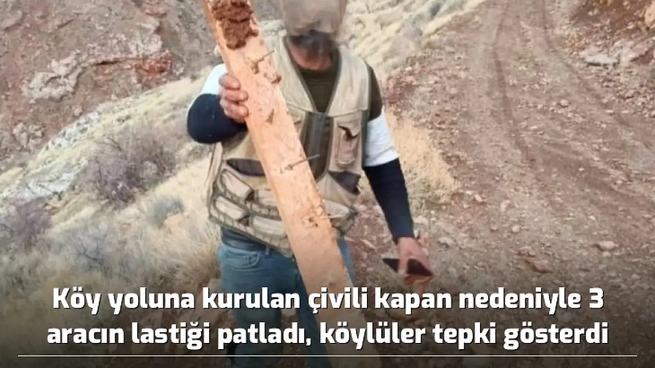 Elazığ'da köy yoluna kimliği belirsiz kişiler tarafından kurulan çivili kapan nedeniyle 3 aracın lastikleri patladı. Köylüler duruma tepki gösterdi.