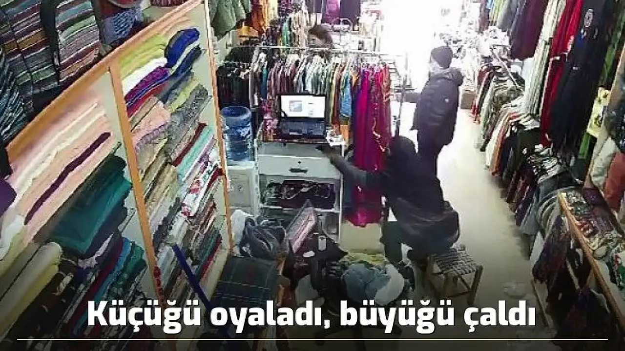 Diyarbakır'da, giyim mağazasına giren 2 kişiden biri mağaza görevlisini oyalarken, diğeri de kasa üzerinde bulunan cep telefonunu çaldı. Hırsızlık anı güvenlik kamerasına anbean yansıdı.