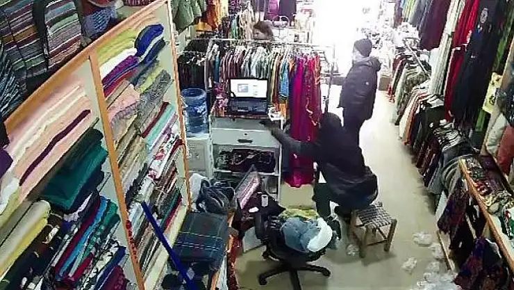 Diyarbakır’da, giyim mağazasına giren 2 kişiden biri mağaza görevlisini oyalarken, diğeri de kasa üzerinde bulunan cep telefonunu çaldı. Hırsızlık anı güvenlik kamerasına anbean yansıdı.